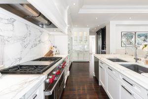 - Stone Counters in Kitchen & Oversized Centre Island with Seating for 4
