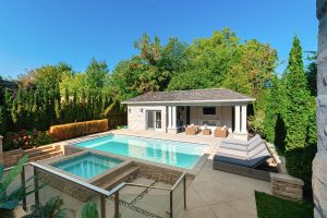 - Resort Style Backyard with Heated Inground Pool, Hot Tub, & Cabana with Full Bathroom